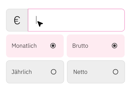 Wahlweise Eingabe von Brutto-, Netto-, Monats- oder Jahreswerten.